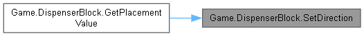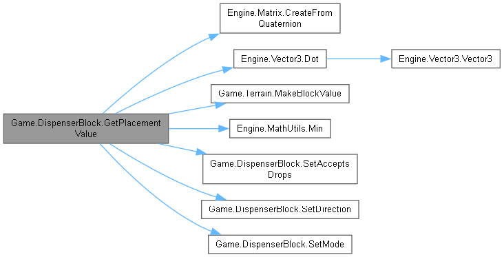 | override BlockPlacementData | GetPlacementValue (SubsystemTerrain subsystemTerrain, ComponentMiner componentMiner, int value, TerrainRaycastResult raycastResult) |