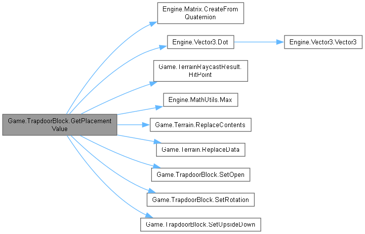 | override BlockPlacementData | GetPlacementValue (SubsystemTerrain subsystemTerrain, ComponentMiner componentMiner, int value, TerrainRaycastResult raycastResult) |